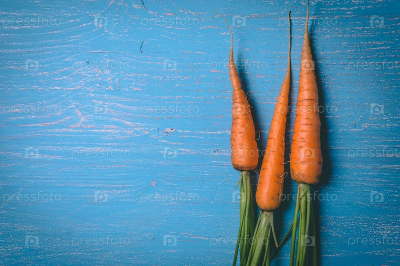 Свежая вкусная морковь на деревянном деревенском столе. Здоровая еда. Овощи