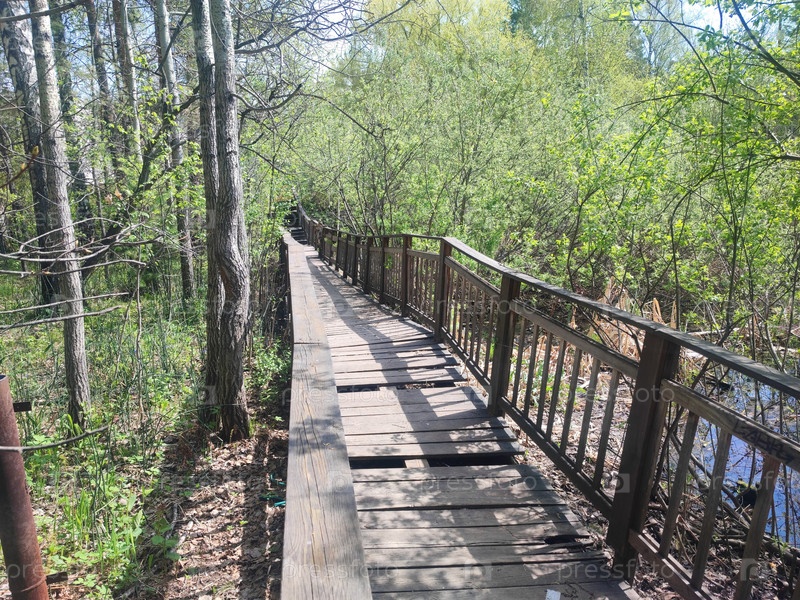Старый деревянный мост у пруда. an old wooden bridge by the pond
