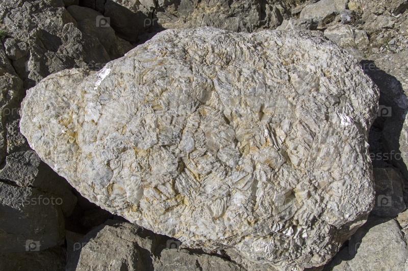 Большой камень, состоящий из кристаллов кальцита. Мыс Алчак, Судак, Крым