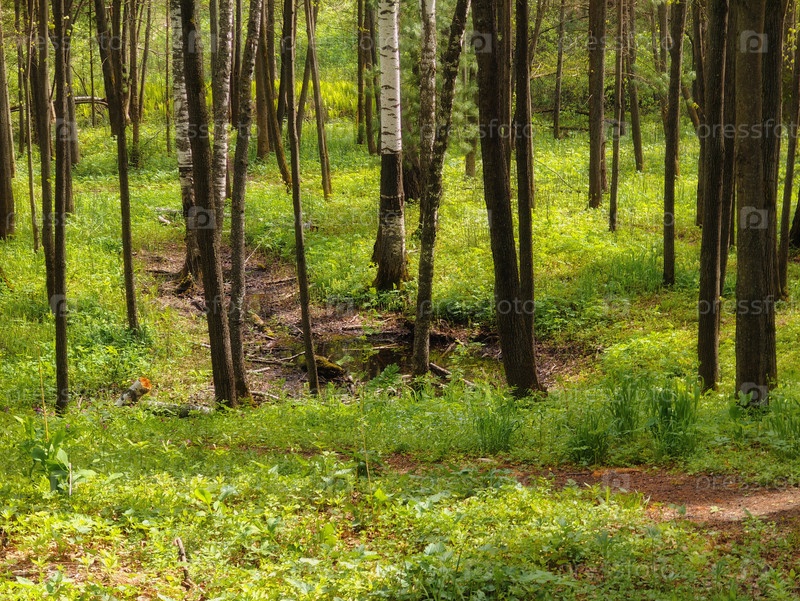 Лесной парк с деревьями