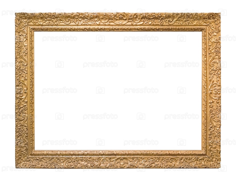 Золотая рама для картин, зеркал или фотографий, изолированных на белом фоне