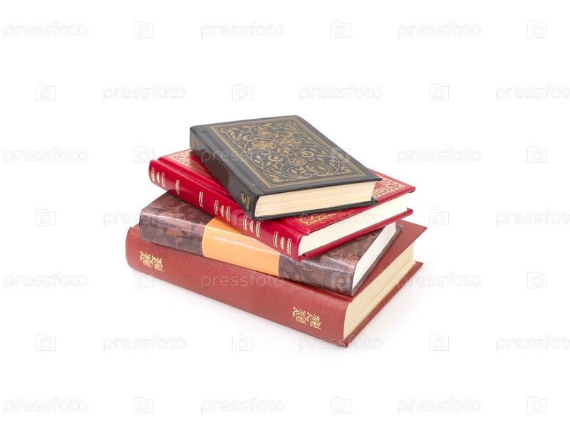 Стек красных и черных книг, изолированных на белом фоне