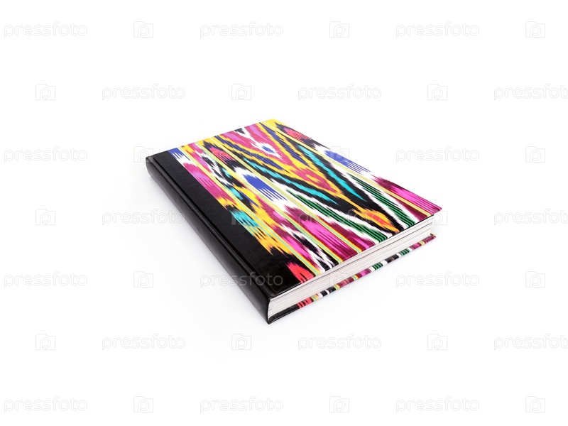 Книга в цветной обложке с белыми листами, изолированными на белом фоне