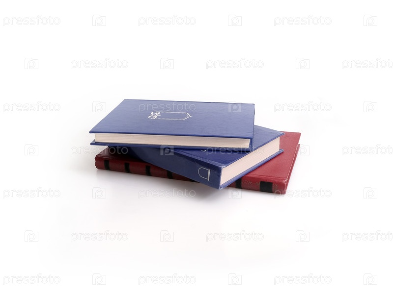 Книги в синих и красных обложках с белыми листами, изолированными на белом фоне