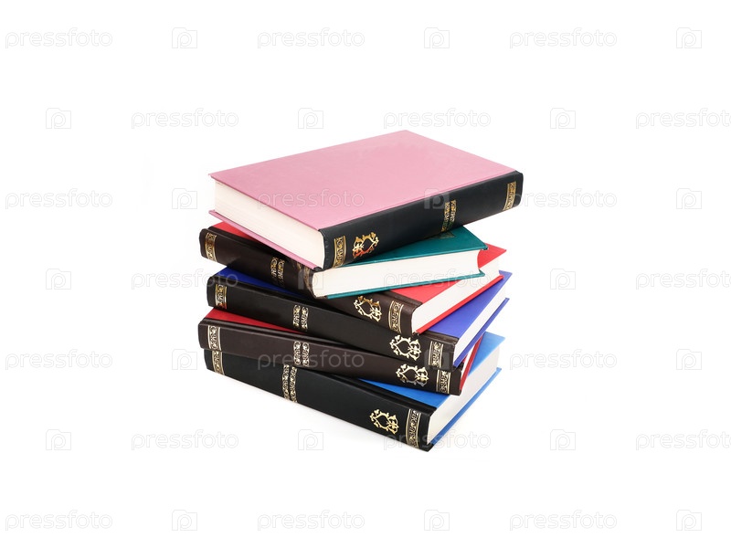 Стек книг в цветных обложках с белыми листами, изолированными на белом фоне