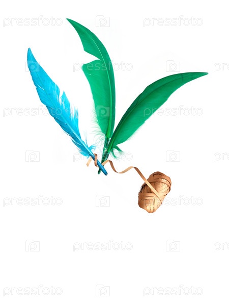 Зеленое птичье перо изолировано на белом фоне