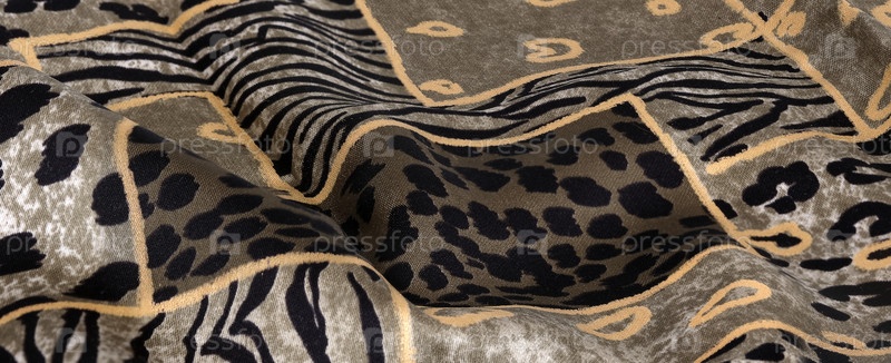 Яркий шелковый шарф с цветочными узорами. Текстильный изолированный фон