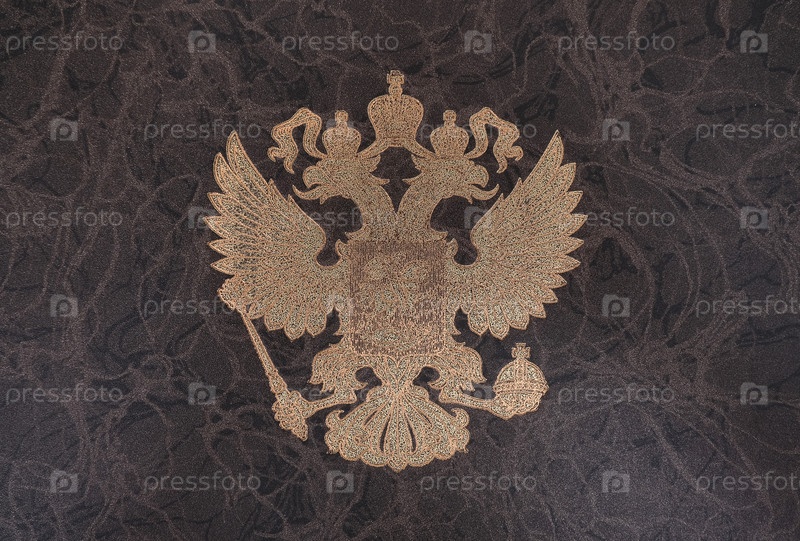 Коричневый изолированный фон с символическим двуглавым золотым орлом для создания шаблона дизайна