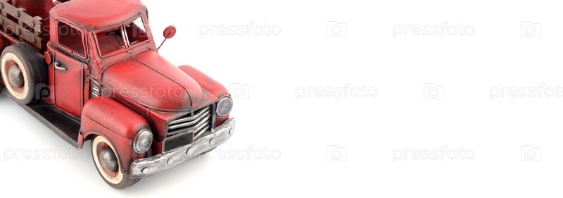 Металлическая модель старого грузовика с бочками для топлива (изготовлена в 1934 году) изолирована на белом фоне