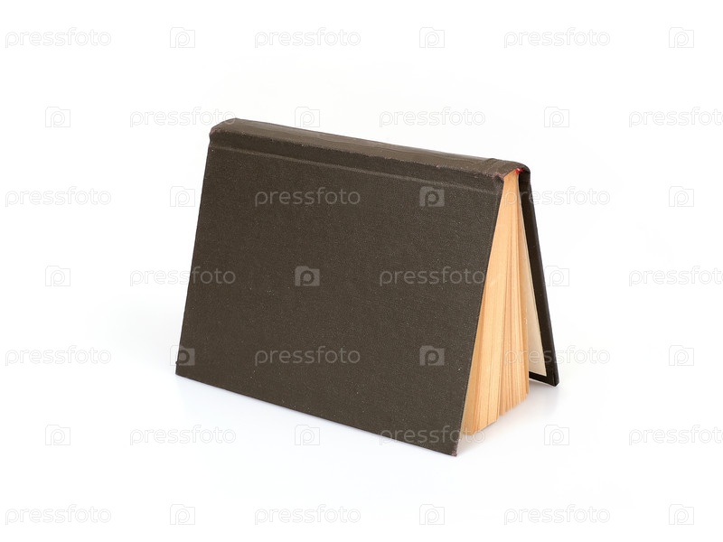 Открытая книга в черном обложке, изолированная на белом фоне