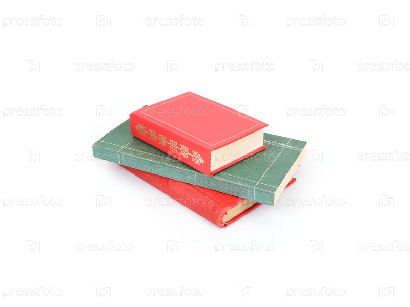 Красные и зеленые книги на белом фоне
