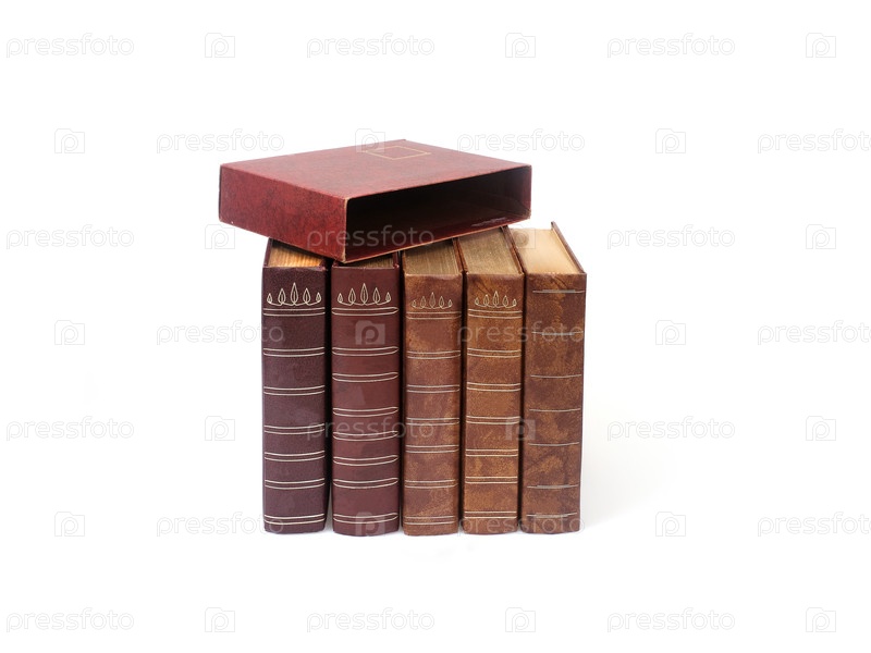 Стек книг в коричневых обложках, изолированных на белом фоне