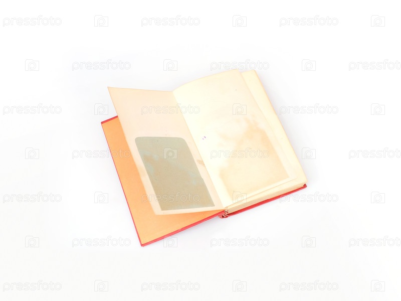 Красная открытая библиотечная книга на белом фоне