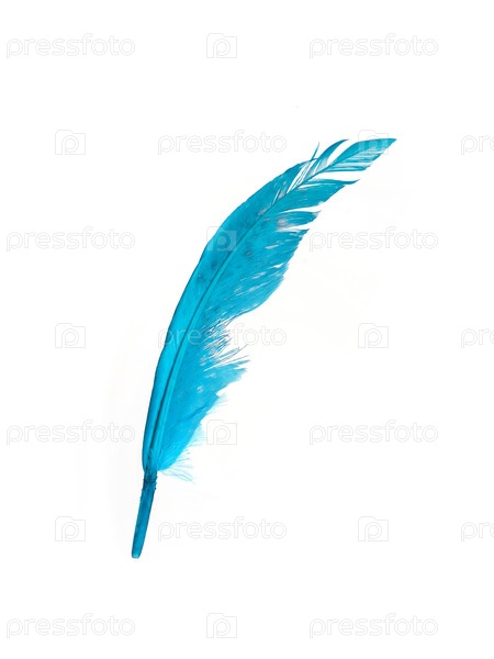 Голубое птичье перо изолировано на белом фоне