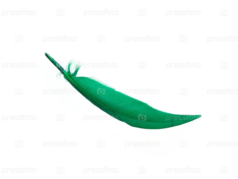 Зеленое птичье перо изолировано на белом фоне