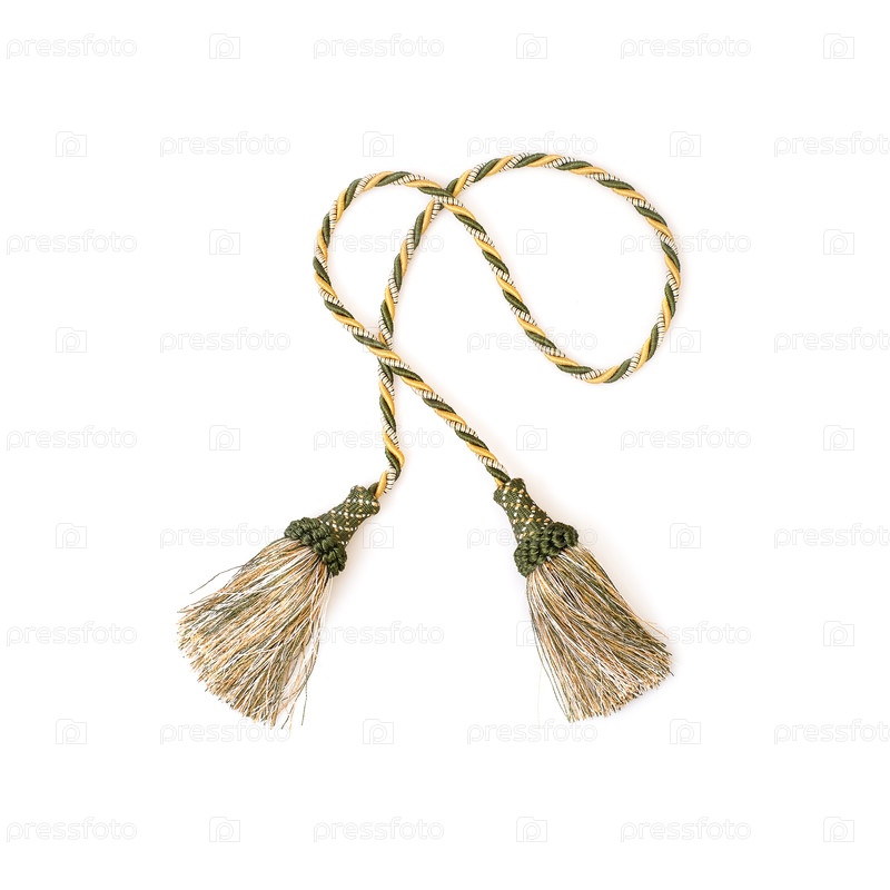 Две золотые шелковые кисточки выделены на белом фоне для создания графических концепций