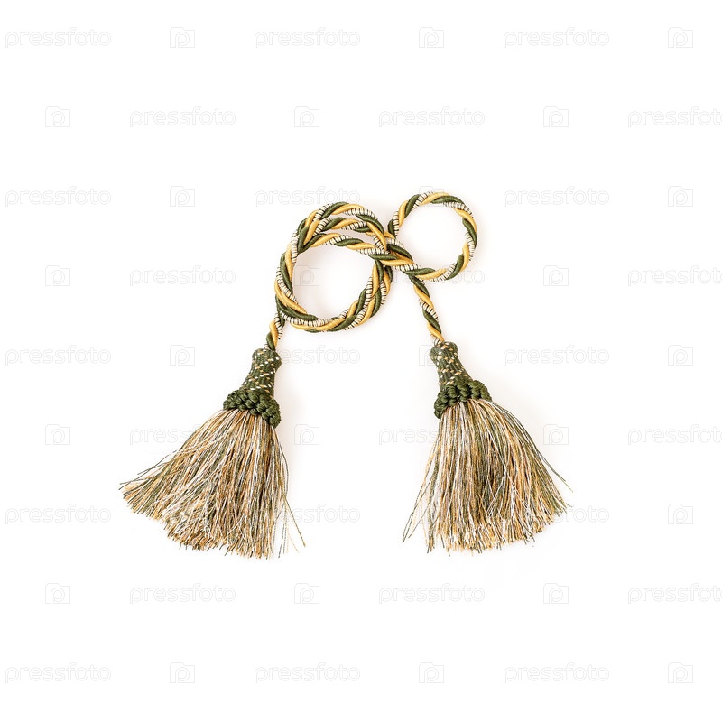 Две золотые шелковые кисточки выделены на белом фоне для создания графических концепций