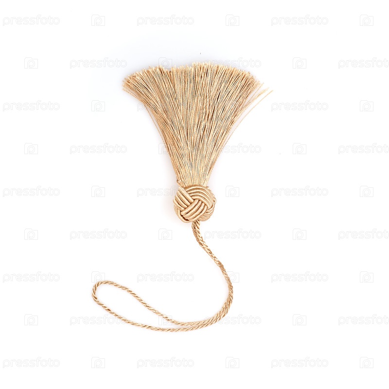 Золотая шелковая кисточка для создания графических материалов, изолировано на белом фоне