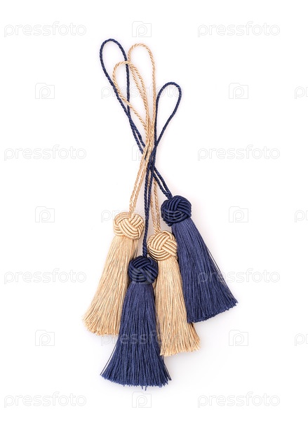 Синие и золотые шелковые кисточки выделены на белом фоне для создания графических концепций