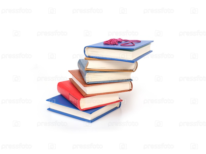Стек книг в цветных обложках с белыми листами, изолированными на белом фоне