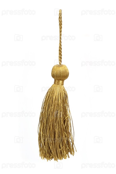 Золотая шелковая кисточка для создания графических материалов, изолировано на белом фоне