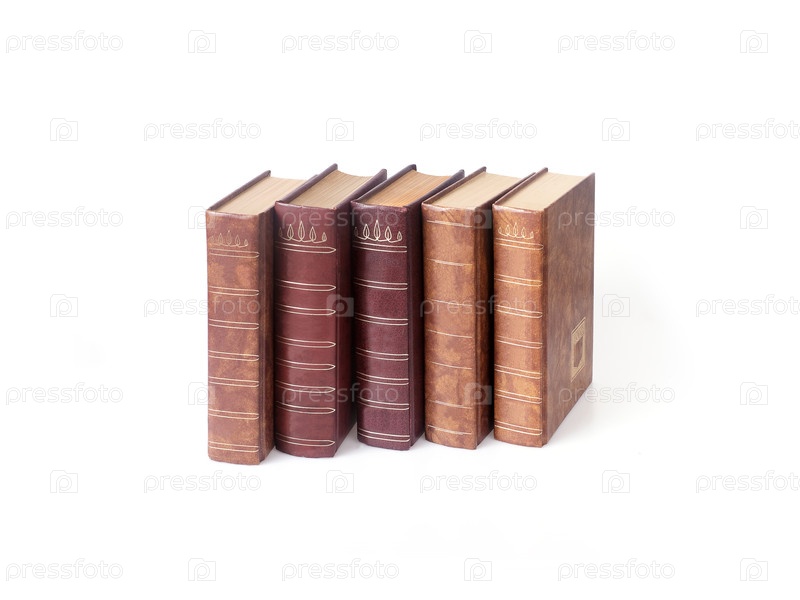 Стек книг в коричневых обложках, изолированных на белом фоне