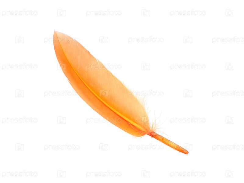 Желтое перо птицы изолировано на белом фоне