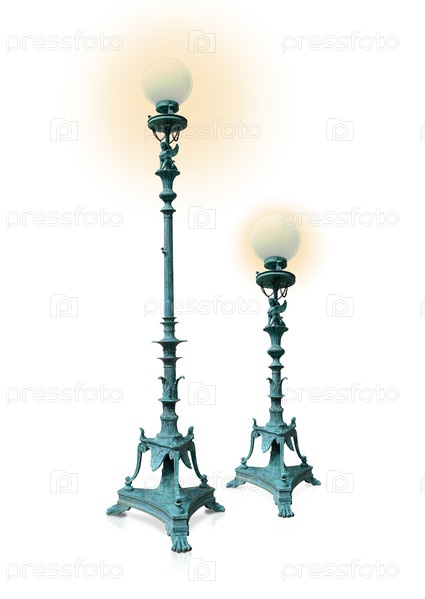 Набор старинных бронзовых ламп изолирован на белом фоне