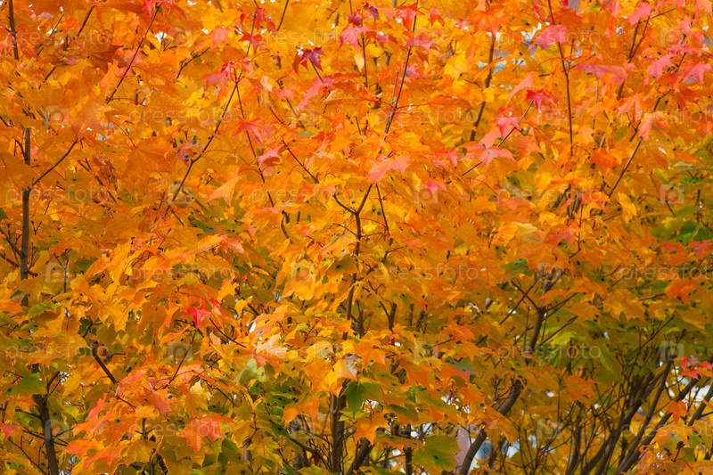 Оранжевые осенние листья на деревьях в виде фона, фактуры (абстракт)