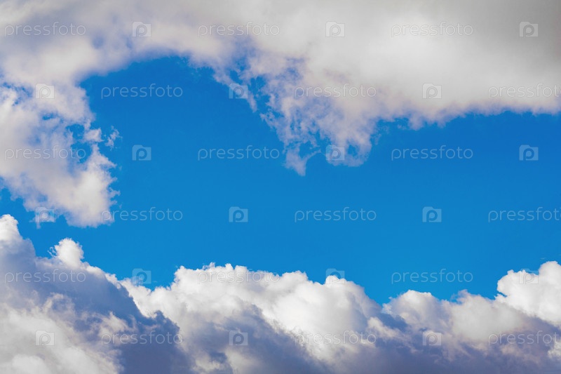 Белые кучевые пушистые облака в ярко-синем небе (фон)