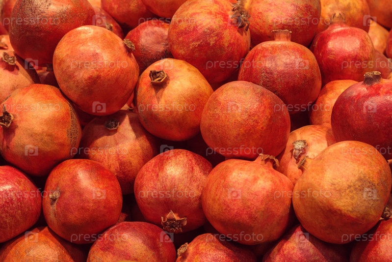 Груда гранатов в магазине как фон, текстура