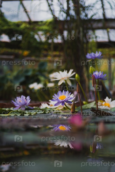 Распустившиеся бутоны кувшинок в пруду