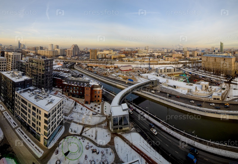 Зимний вечер в районе Электрозавода. Река Яуза. Москва
