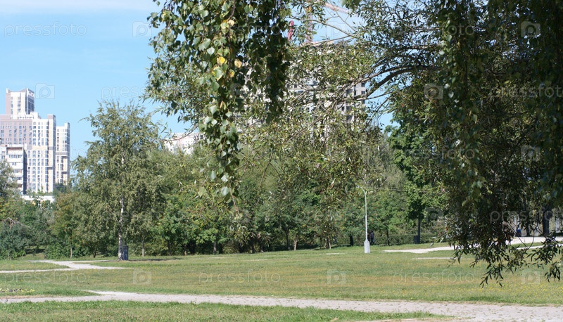 Лето в городском парке в сухой солнечный день
