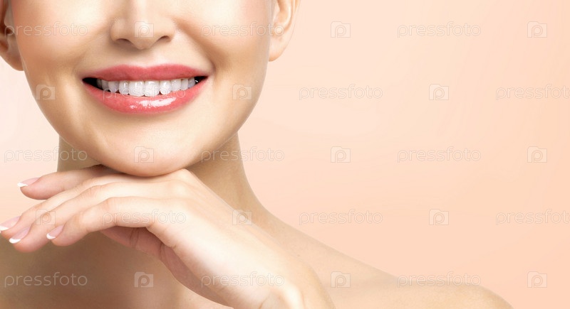 Красивая женщина с чистой и свежей кожей улыбается вам. Красивый портрет девушки
