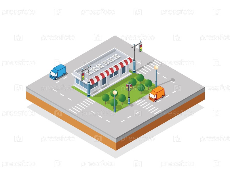 Большой 3D мегаполис небоскребов, домов, садов и улиц в трехмерном изометрическом виде
