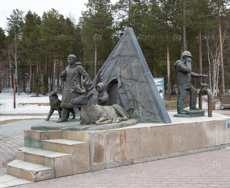 Памятник пионерам в центре Ноябрьска весной