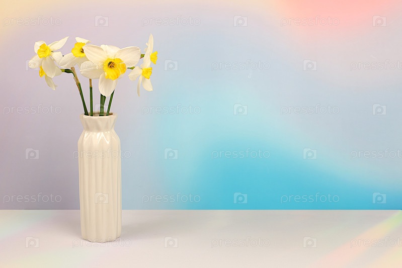 Абстрактная цветочная аранжировка для экрана и шаблон дизайна. Красивый флаер с нарциссами на элегантном ярком фоне. Весенняя открытка, элегантная концепция природной красоты, подарок для близких
