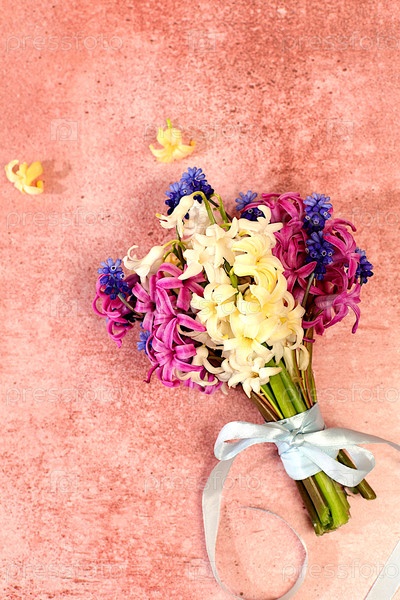 Красивый букет белого гиацинта и мускари. Абстрактная цветочная композиция для экрана и шаблон дизайна. Весенняя поздравительная открытка, элегантная концепция красоты, подарок для близких
