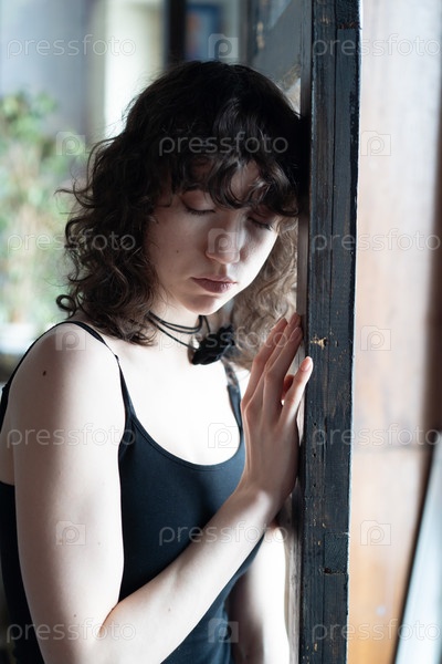 Портрет молодой красивой женщины с вьющимися волосами в студии