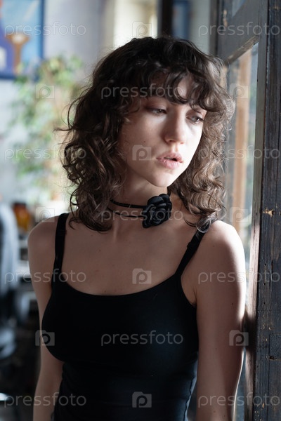 Портрет молодой красивой женщины с вьющимися волосами в студии
