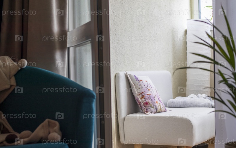 Декоративная подушка на диване. Внутренний интерьер