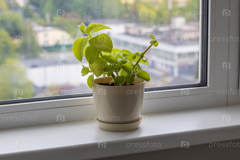Эстетический снимок домашних горшковых растений на подоконнике современной квартиры. передний