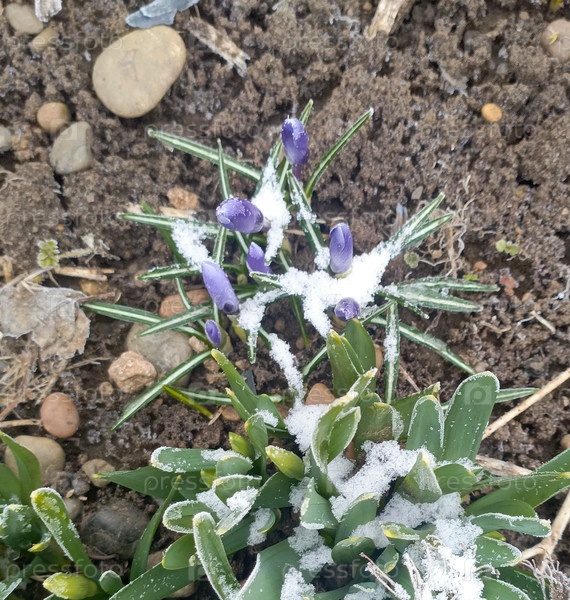 Фиолетовые крестики, бросающие вызов раннему весеннему снегу в ботанике Посмотреть