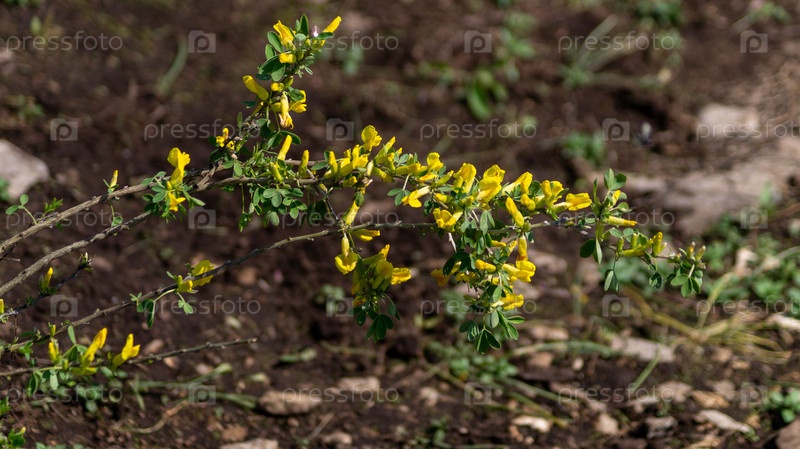 Карагана древовидная с желтыми цветами и зелеными листьями