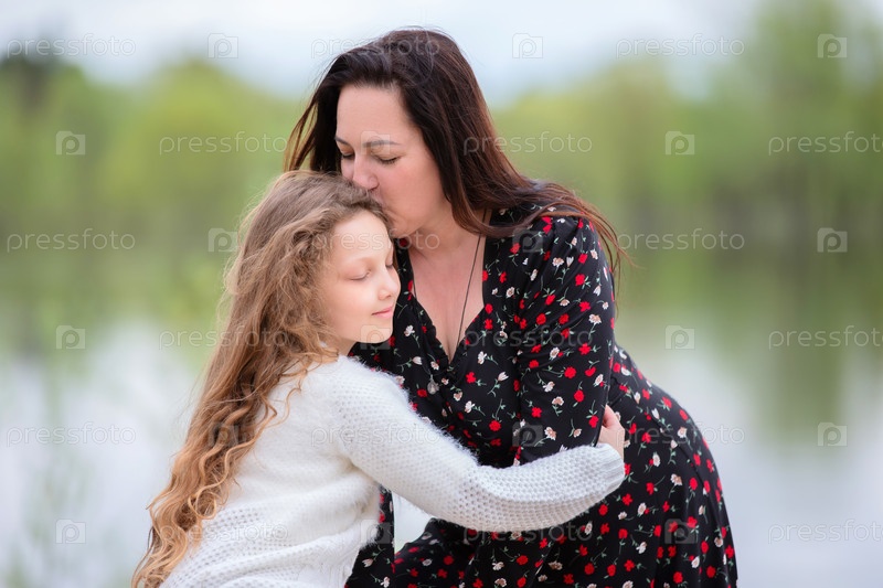 Мама и дочь наслаждаются прогулкой в парке в День матери