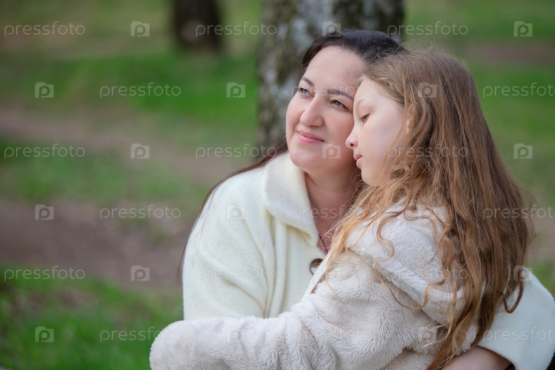 Мама и дочь наслаждаются прогулкой в парке в День матери
