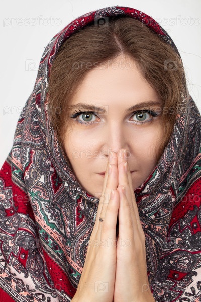 Женщина с традиционным шарфом в молитвенной позе