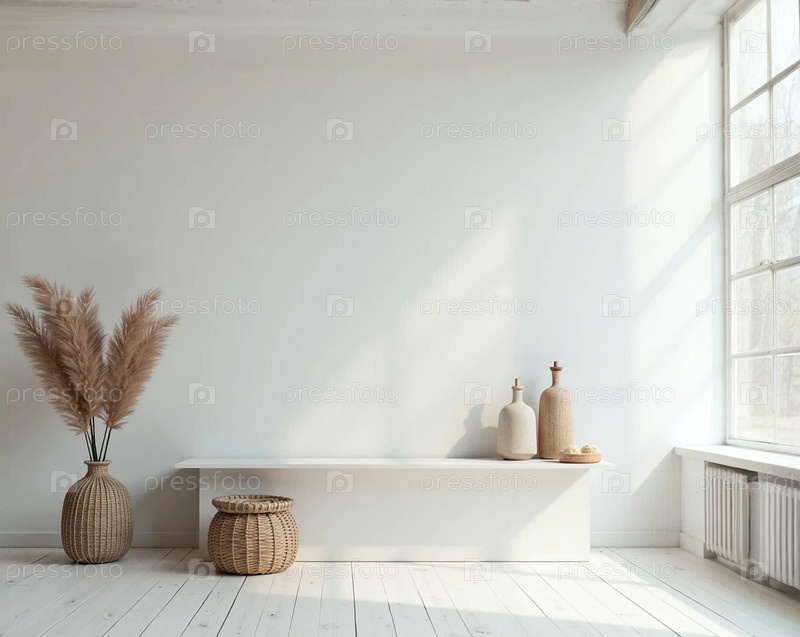 Напольная ваза с растением в комнате у белой стены