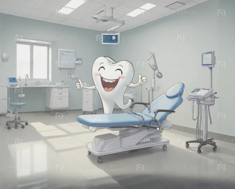 Зуб стоит и улыбается на полу в больнице в стоматологическом кабинете